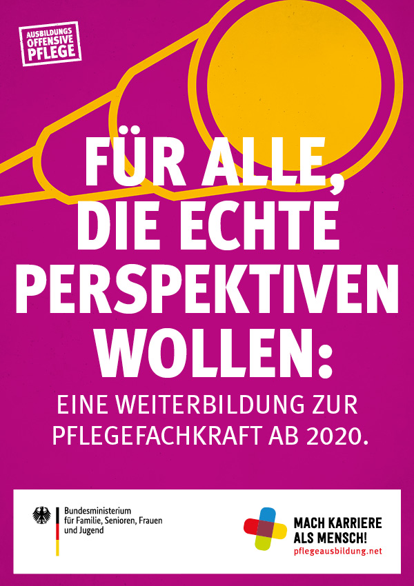 Zum Start der Informations- und Öffentlichkeitskampagne „Mach Karriere als Mensch!“ des BMFSFJ am 22. Oktober 2019 wurde der nebenstehende Kampagneleitfaden veröffentlicht. Er enthält Anregungen, die für die Kommunikation des Kampagnenauftakts genutzt werden können. Darüber hinaus finden sich dort weitere Informationen rund um die Kampagne, eine Auflistung der Materialen des Webshops und Hinweise, wie diese ab dem 22.10.2019 über die Homepage pflegeausbildung.net bestellt werden können.
